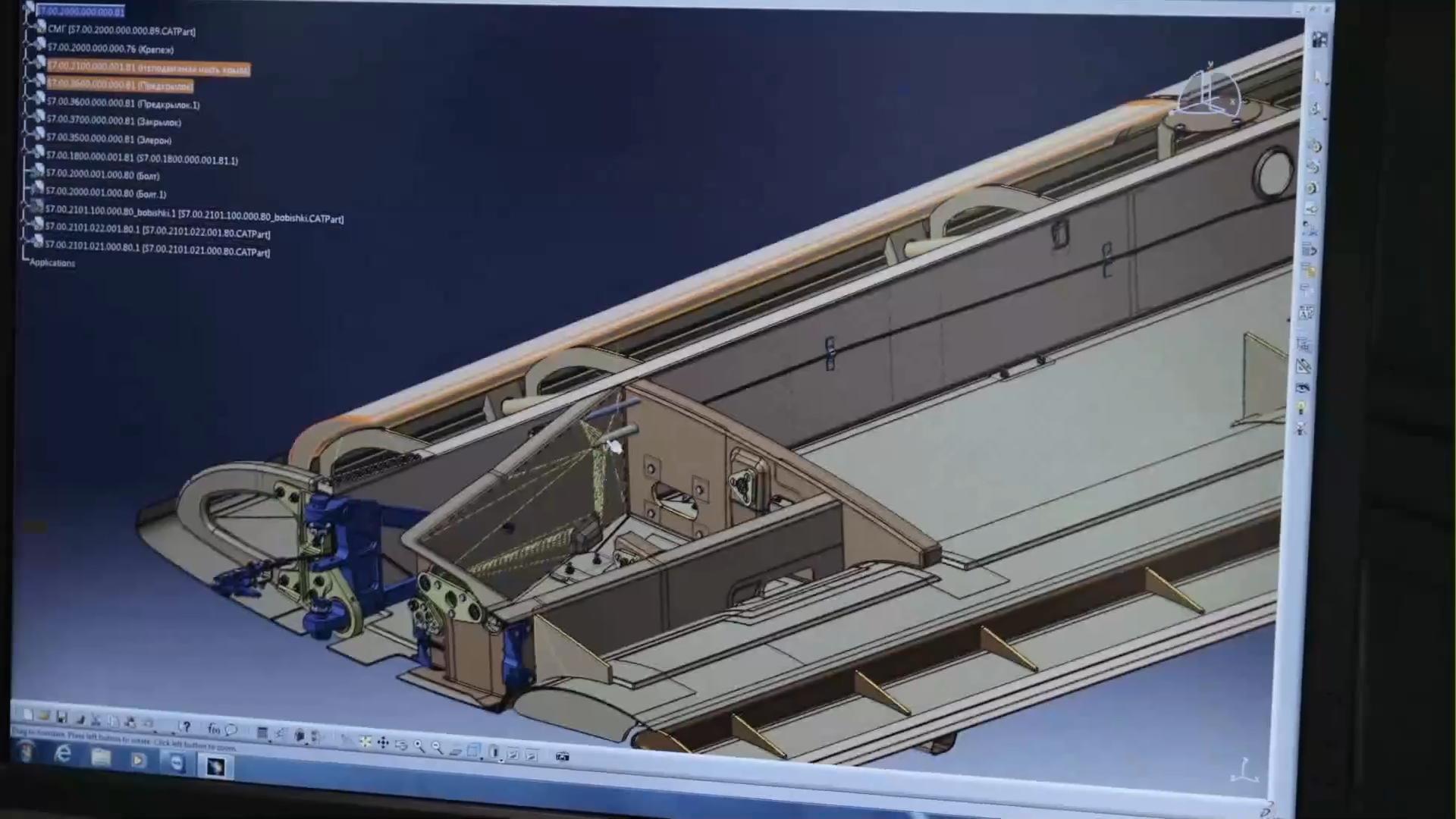 Выпущены ЗD-модели и КД в среде CATIA V5 каркаса днища кабины экипажа, среднего и центрального отсеков фюзеляжа.